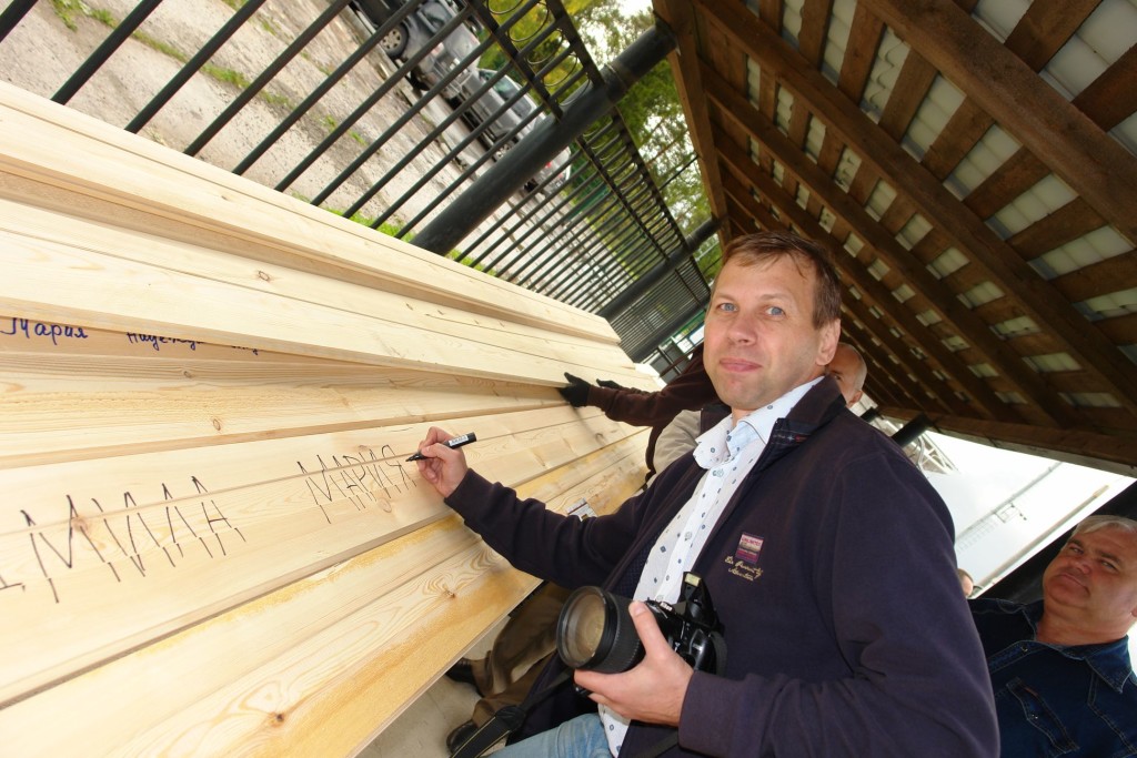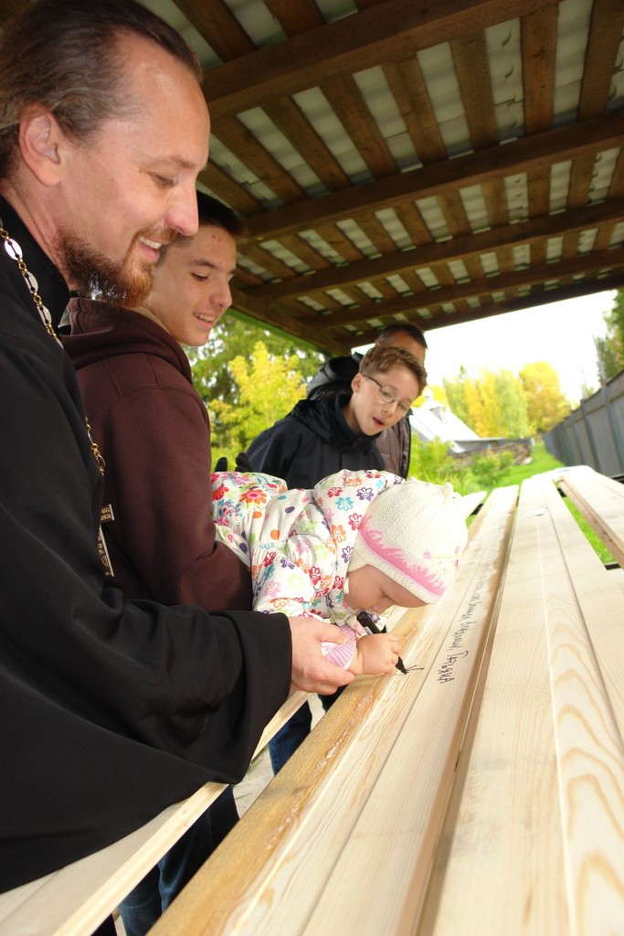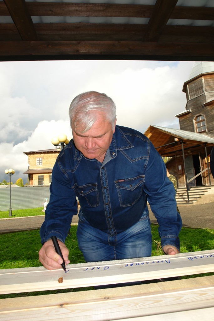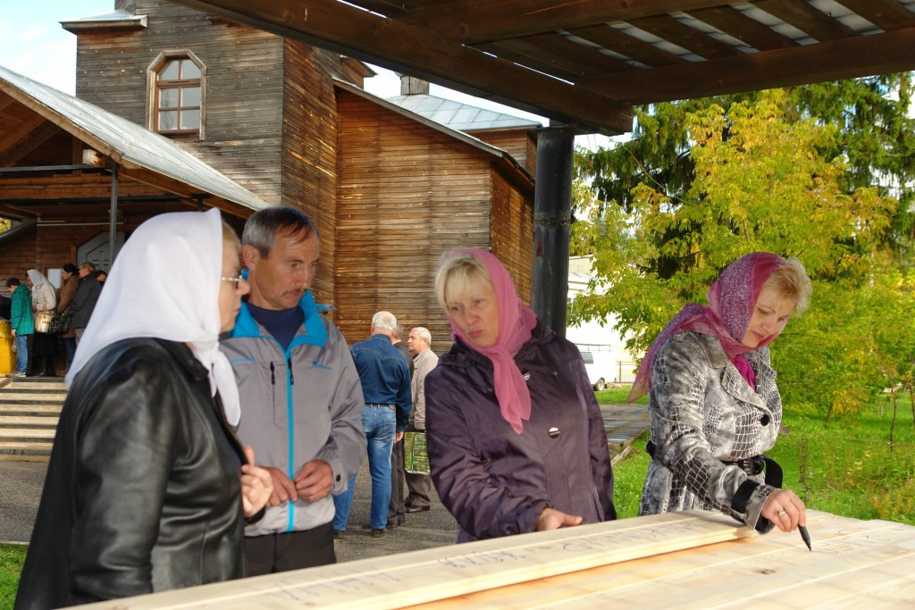 Сегодня после молебна мы предложили жертвователям написать свои имена и имена близких на обратной стороне доски. За всех жертвователей в нашем храме в течение года будет совершаться молитва, ну а для людей «своя» доска – это вполне материально-осязаемый вклад в строительство.