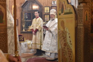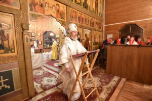 Храм святого Архистратига Михаила в Мирном. Сотни жителей города приняли участие в пасхальном крестном ходе и ночном богослужении, которое возглавил Преосвященный Александр, епископ Плесецкий и Каргопольский. Владыке сослужило духовенство Мирнинского благочиния: